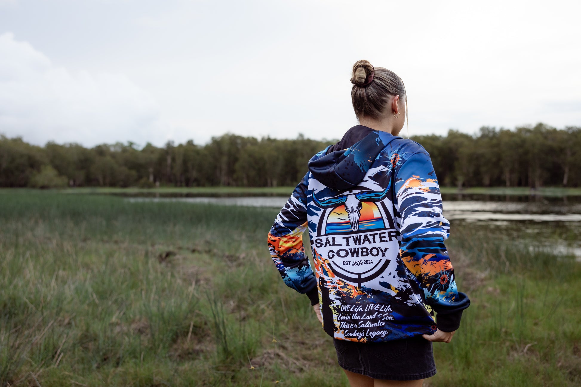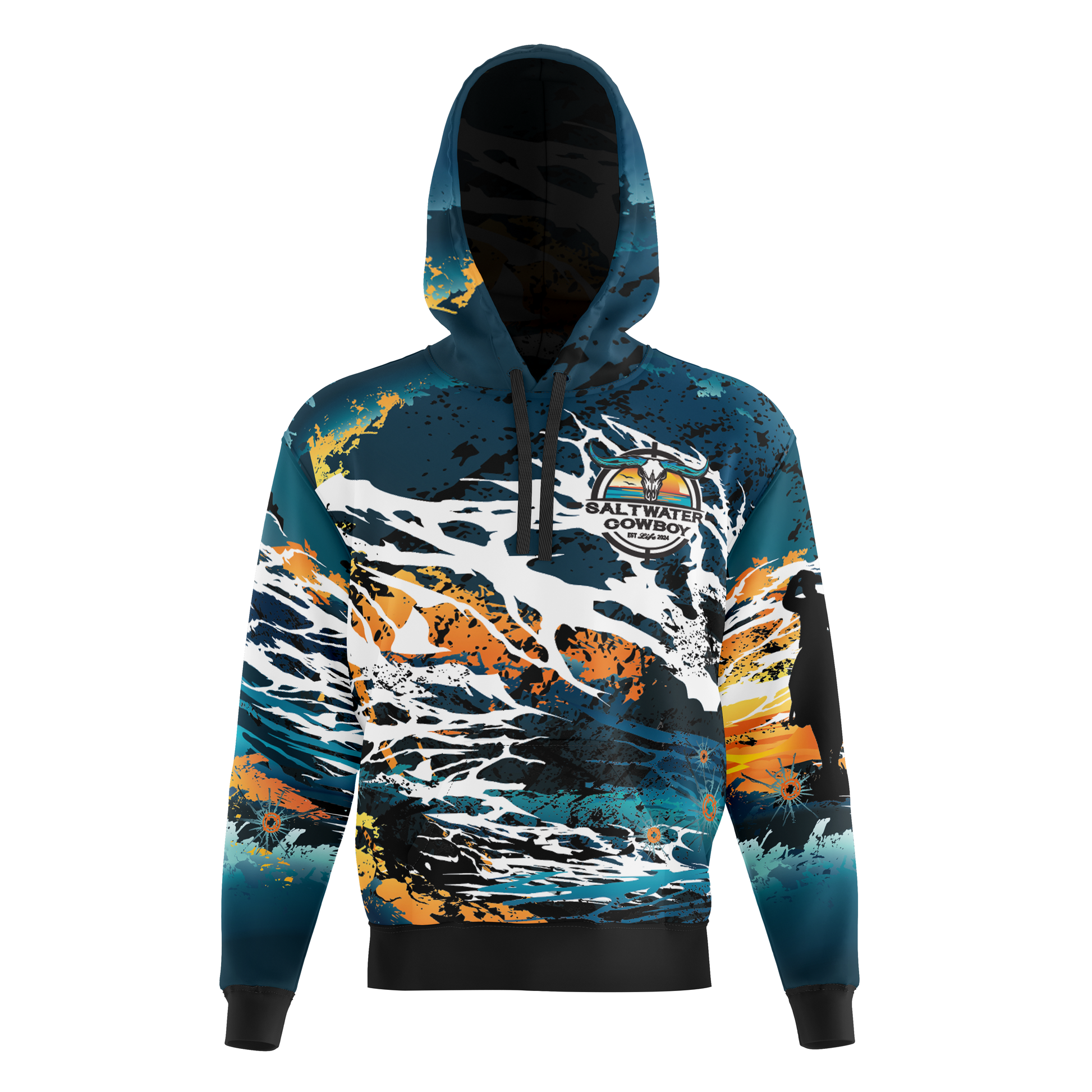 Make waves in our signature vibrant Saltwater Cowboy Life Hoodie. This eye-catching design brings together bold colours that capture the spirit of coastal adventures and outback life. Perfect for those who have a love for living to the fullest, this premium cotton hoodie is for every day life. Features: